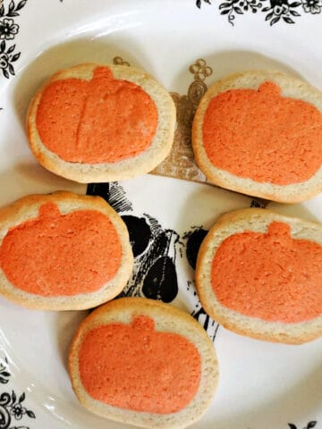 Halloween Sugar Cookies, cut out in the shape of a pumpkin, then decorated with a homemade icing, Halloween sprinkles and edible scary eyes, food colouring for various designs and choco writer, some spooky baked goodies for your Halloween party. They are fun to bake, easily customisable and so delicious!