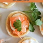 - To assemble, spread creme cheese over each blini, top with smoked salmon, and garnish with fresh parsley or dill